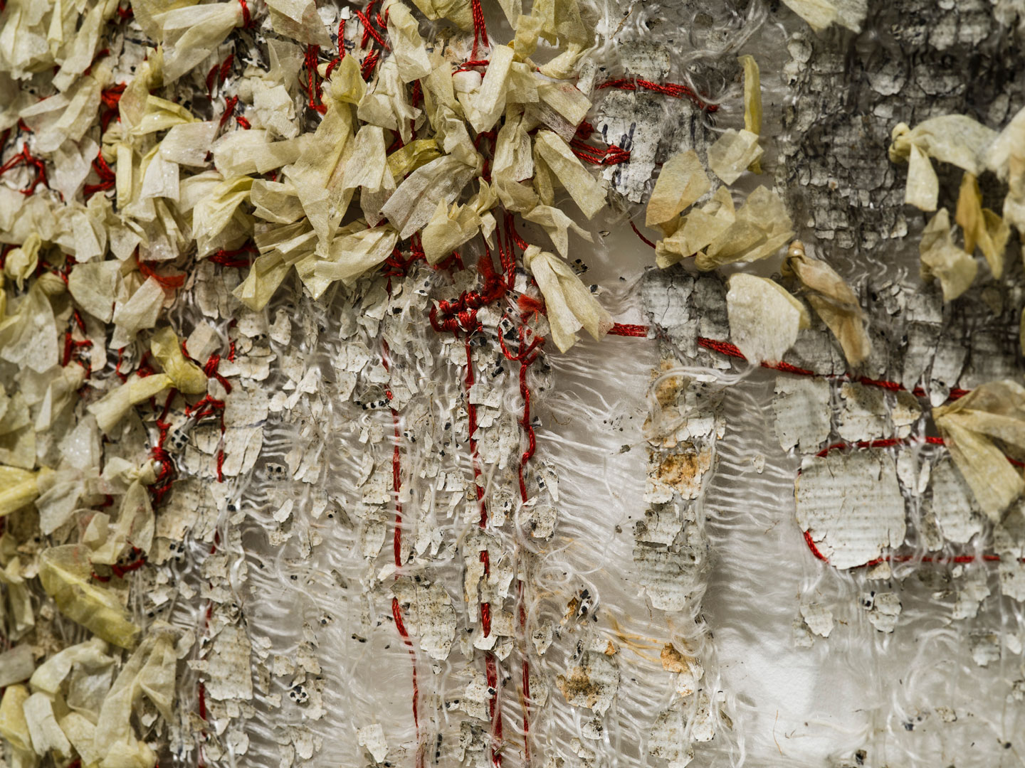 Mapondera is a multi-disciplinary artist who creates work through painting, drawing, sculpture and installation. He is best known for his complex wall sculptures which create richly tessellated abstract surfaces out of cardboard and textiles. These works challenge the linearity of time and history, transfiguring ordinary materials into precious, textured visual puzzles. The artist also paints surreal, unnerving dreamscapes, combining animals with domestic objects, using the deep-rooted cultural psychology of the human-animal relationship to evoke social and political themes of power, domination, hierarchies and corruption.
