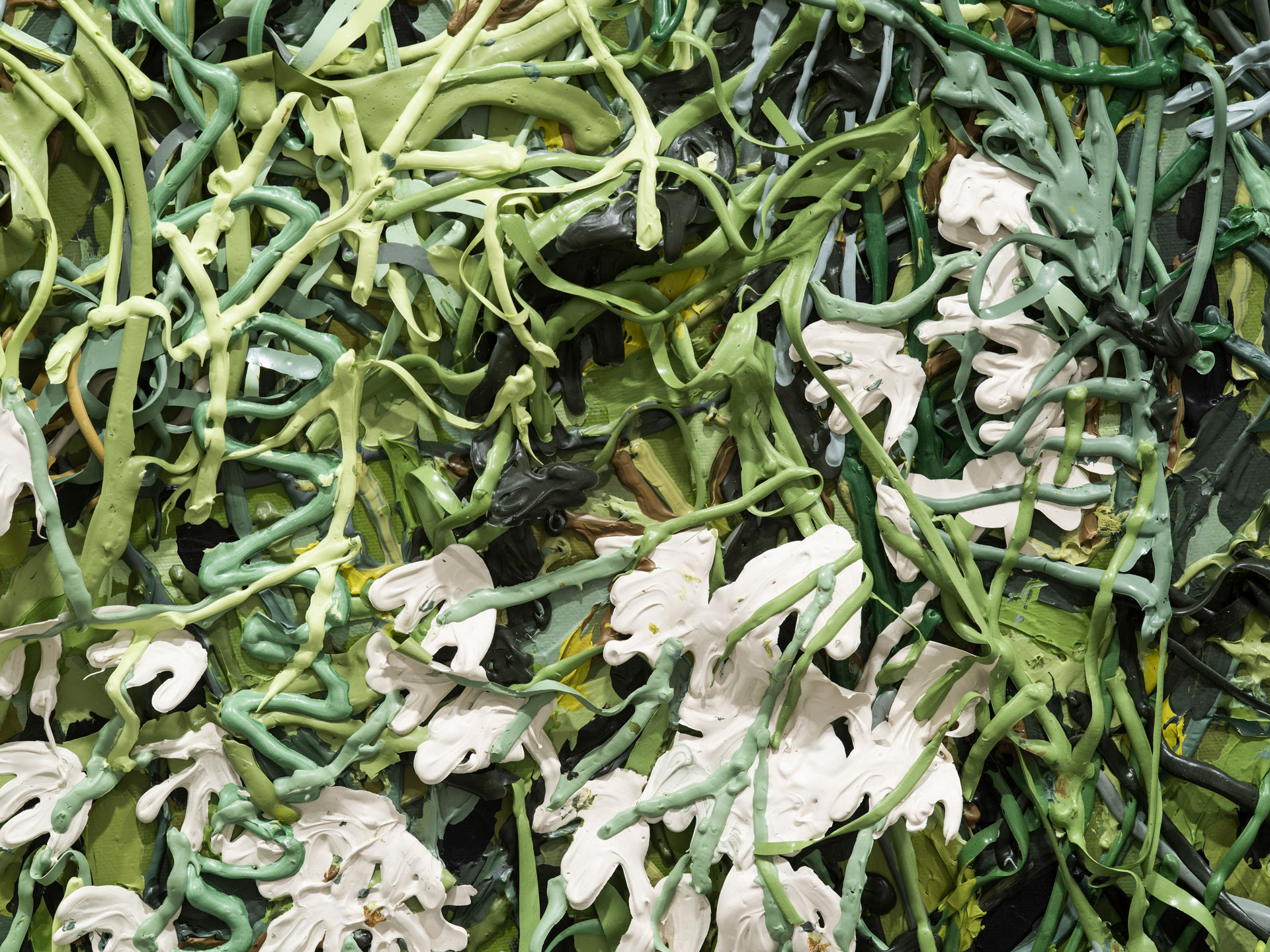Gabrielle Kruger’s unique practice involves harnessing the materiality of acrylic paint to create complex, layered, 3-dimensional installations of plant-like forms. Freeing the paint from the surface of a canvas or board, the artist draws attention to the constructedness of both the tradition of landscape painting, and the modern natural environment itself. These works expose the complexity of the distinction between natural and synthetic, between plant, paint and plastic, hinting at the difficult relationship between humanity and our natural environment in the Anthropocene era.